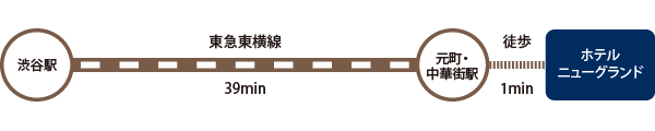 渋谷駅→(東急東横線 元町・中華街行)→元町・中華街駅