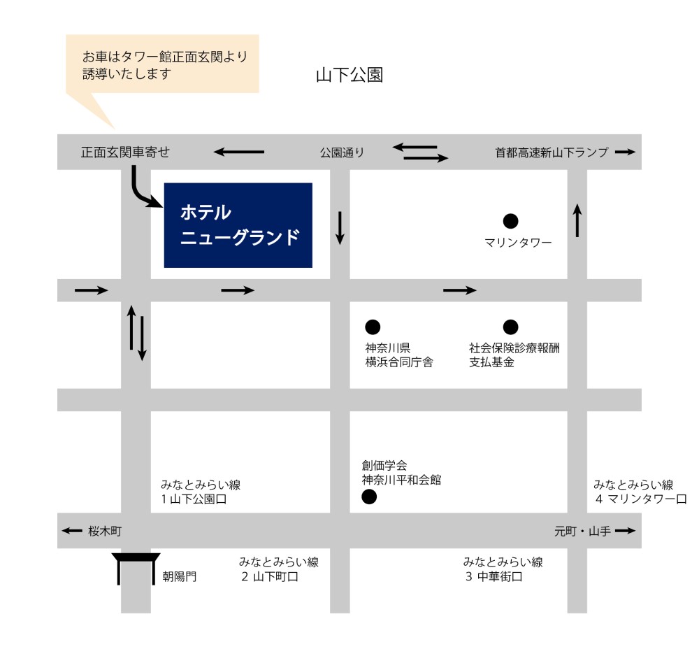 ※高速をご利用の方は、土日・祝日は新山下ランプが大変込み合いますので、横浜公園ランプのご利用をおすすめいたします。