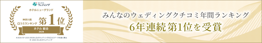 - 2024.01.22 お知らせみんなのウェディングクチコミ年間ランキングにて、2021年度~2023年度まで3年連続「第1位」を受賞