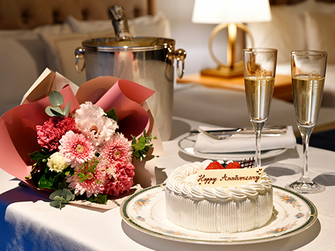ケーキやシャンパン、お花などが付いた宿泊プランをご用意いたしました。