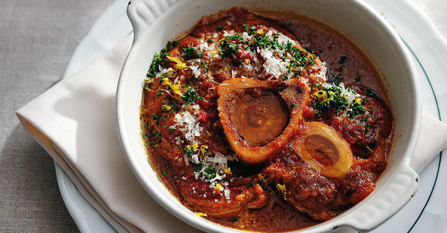 仔牛の骨付きすね肉をじっくりやさしく煮込んだ郷土料理で、