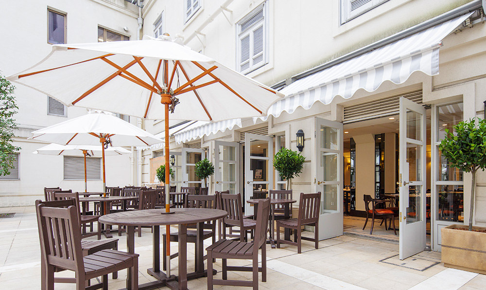 やわらかな風が吹く開放的なガーデンを前に、あたたかみ溢れる雰囲気と朗らかな笑い声が重なる心地よい寛ぎの空間。