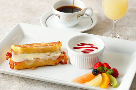 【ブレックファストセット】 ¥4,500 【モンテクリストサンド】 <セット>¥4,200 <単品>¥2,500 【コンチネンタル ブレックファスト】 ¥2,900 メニュー詳細はこちら |