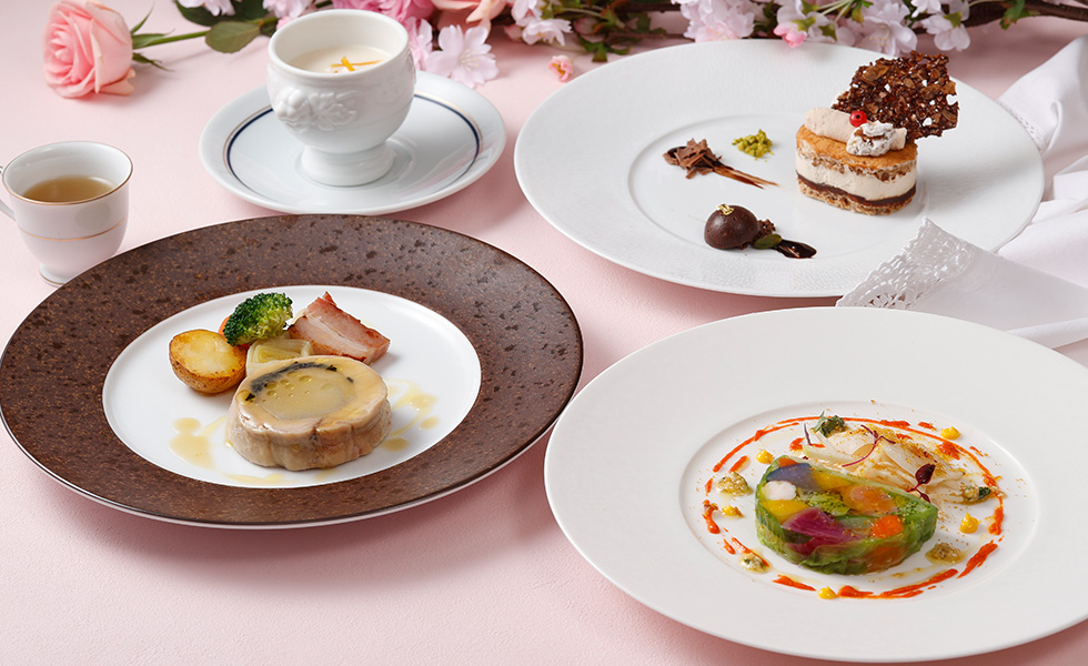 冬野菜と魚介のテリーヌに香ばしい炙りイカを添えた、まろやかな根セロリのレムナードでお召し上がりいただく前菜に始まり、聖護院かぶに冬を感じさせる柚子の香りをほんのりと添えたスープ、メインには、旨味豊かな錦爽鶏のバロティーヌを、旬の野菜と共にポトフー仕立てにしたメニューをお選びいただけるコースです。