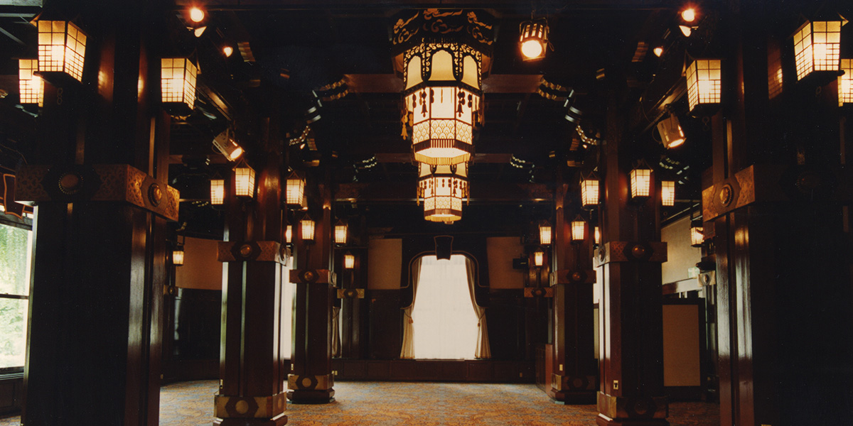 開業時はメインダイニングとして使用され、ホテルのシンボルマークにもなっているフェニックス(不死鳥)を会場名に取り入れたホテルの象徴ともいうべき宴会場。当初、お客様の大半が外国の方々であったことを意識して造られた桃山調と呼ばれる和の設えが、思わず息を飲むほどに神秘的で凛とした雰囲気を纏わせています。