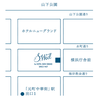 初代総料理長サリー・ワイルの弟子が作った洋菓子の名店「エスワイル」の名称を受け継ぐ形として「S.Weil by HOTEL NEW GRAND」としました。サリー・ワイルの横顔をシンボルマークに描いたロゴには、革新に満ちた若きシェフへの尊敬の念と、1927年のホテル開業時より長きに渡り伝統の味を受け継ぐホテルの食への想いが込められおり、デザイナー三宅瑠人氏・岡崎由佳氏が手掛けました。